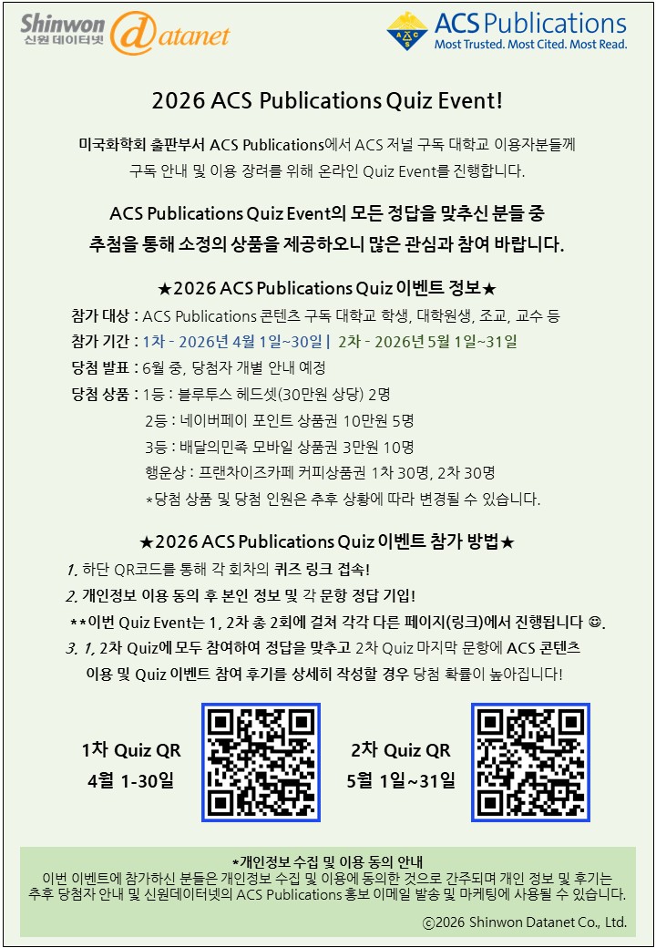 To promote the use of ACS (American Chemical Society) Publications, a quiz event is being held by Shinwon Datanet, the official ACS representative in Korea.