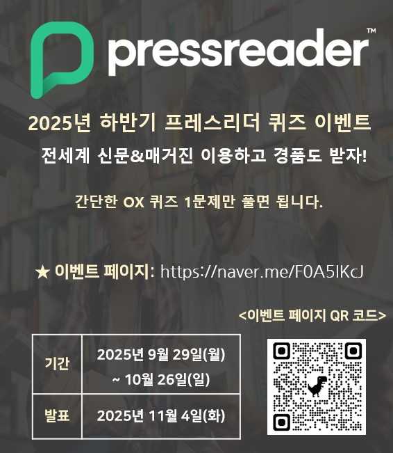 전세계 신문 & 잡지 데이터베이스 ‘PressReader’ 홍보를 위한 이벤트를 개최합니다.
